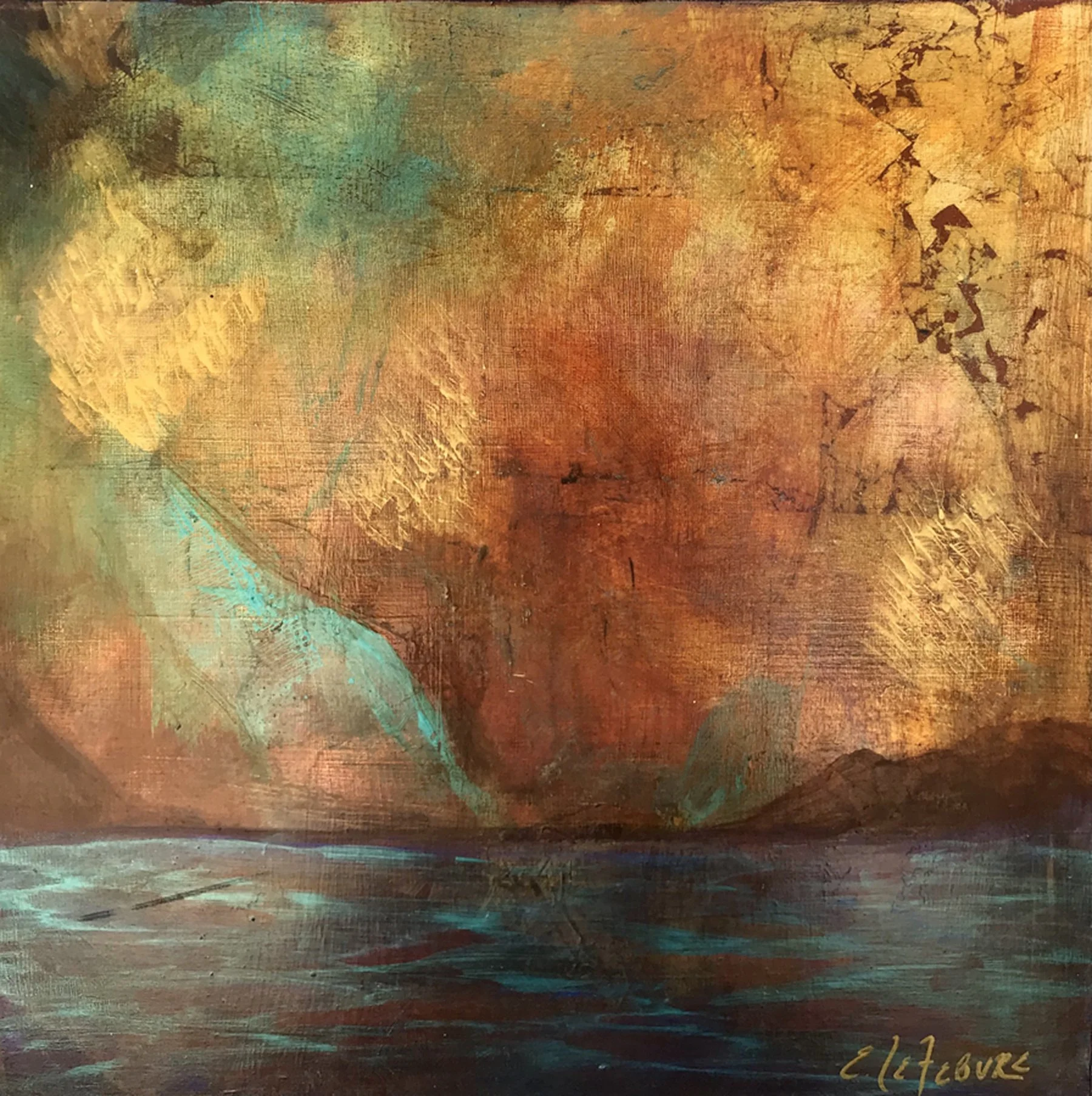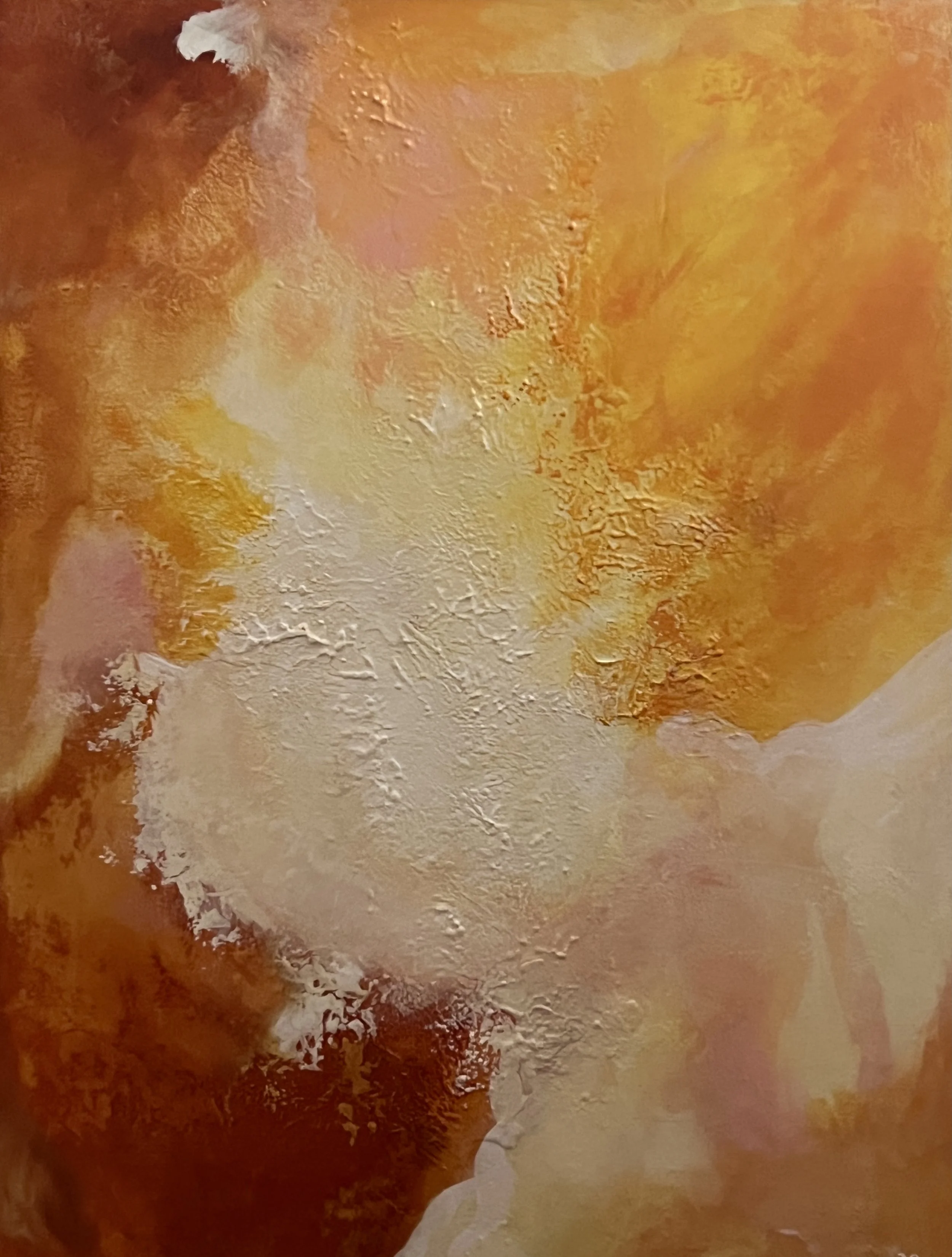 Red oxide, gold, copper, bronze and umber are rich colors and deserve texture - so be it! This piece looks dimensional and the color seems to permeate the canvas behind a veil of texture and gloss.