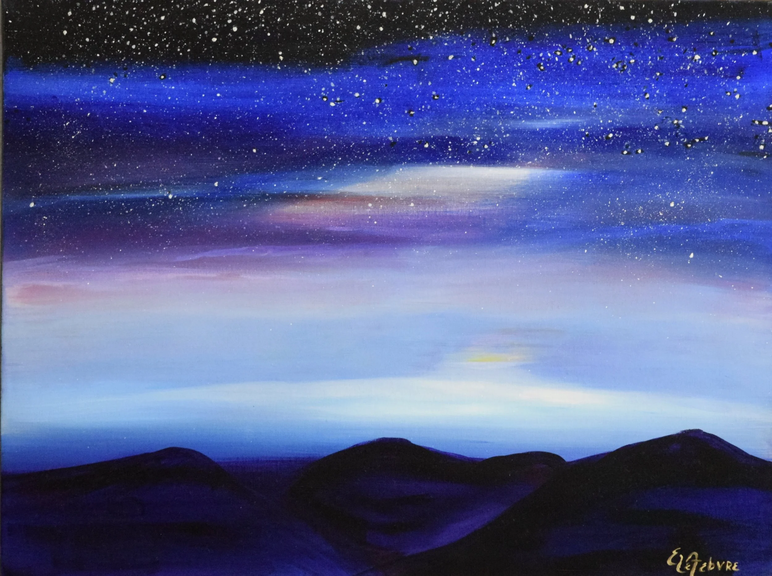 This piece was inspired by a trip to Mendocino, CA where the night sky was so intense the lights from the small village were insignificant compared to nature’s show.