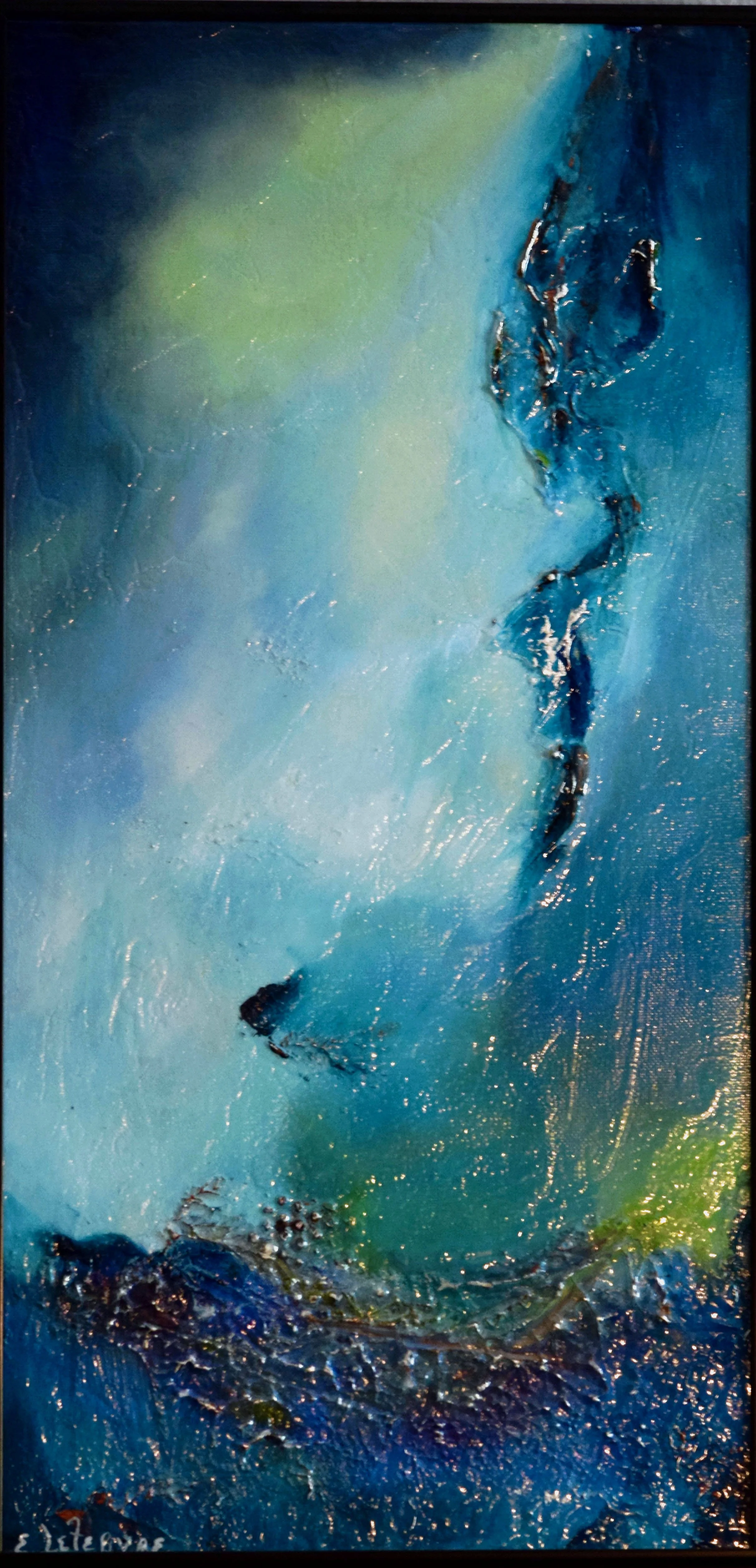 This is a juried gallery show winner. You can feel the rhythm in this piece as the color seems to roll along together . My painting to music seems to have clearly affected brush movement.