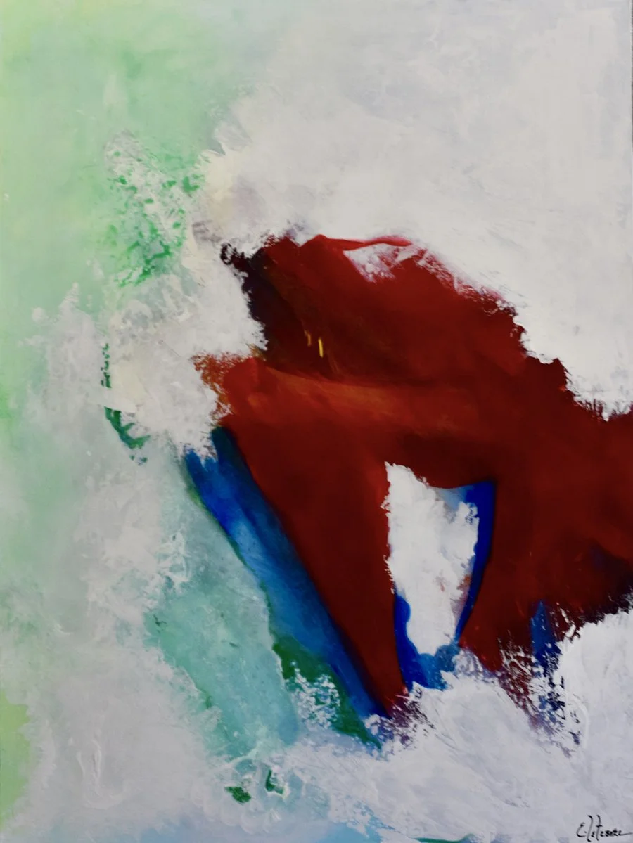 This is a gallery juried show winner. Although abstract, you can sense the risk, sincerity and hope inferred in this piece. The colors are rich, like the desire for commitment.