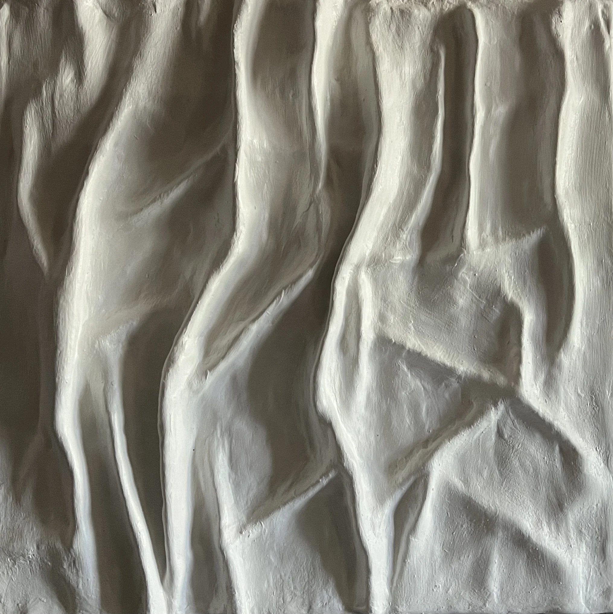This is a piece that undulates across the panel with a sinuous or wavelike motion. The mounds and valleys stand out from the panel so that it is three dimensionals.