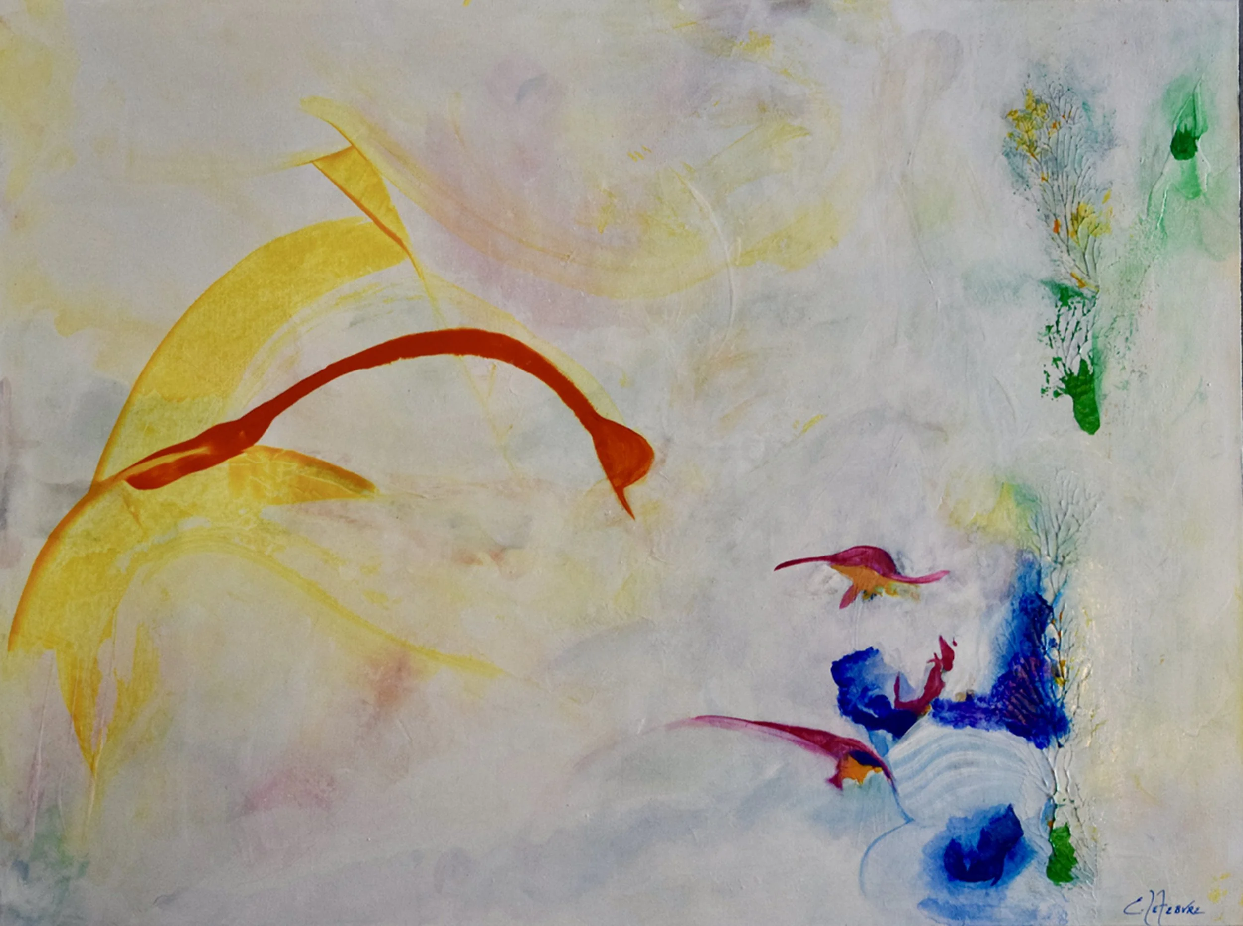 The brilliant colors and sense of movement in this piece make it seem to be emerging, evolving, off the canvas. Like we evolve in life and move on to our next chapter.