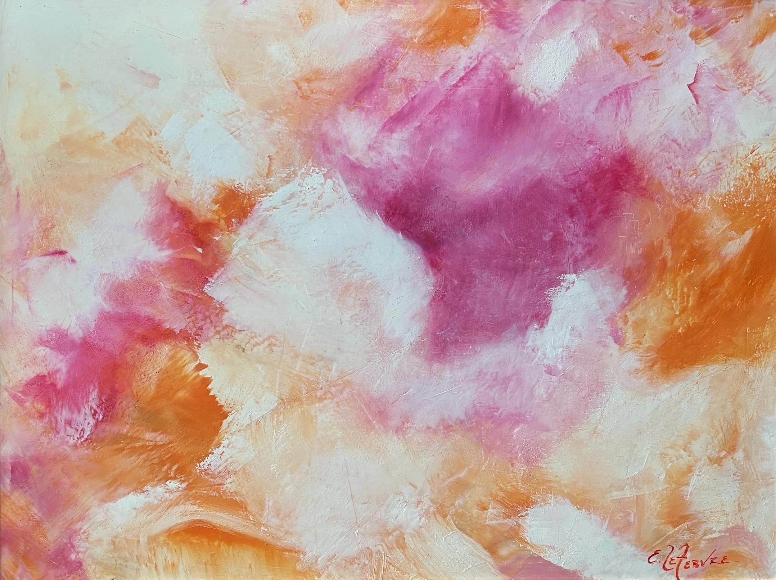 This was painted with a lot of energy and curiosity - what’s underneath? Rich reds, oranges and indian yellow with creamy white - all those flavors chilled to perfection in a light confectionary.