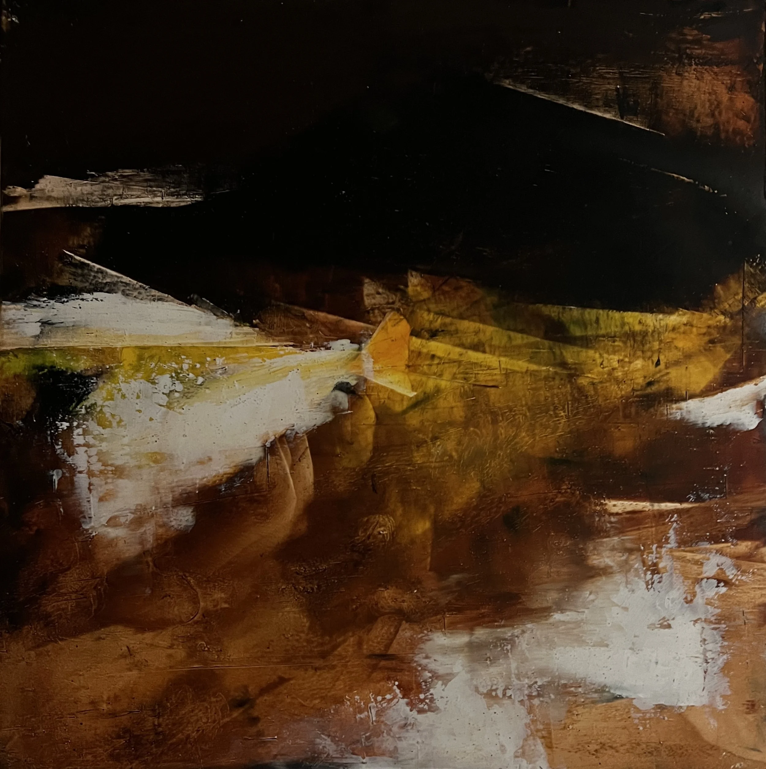 10 x 10” Cold Wax & Oil on Wood Panel.