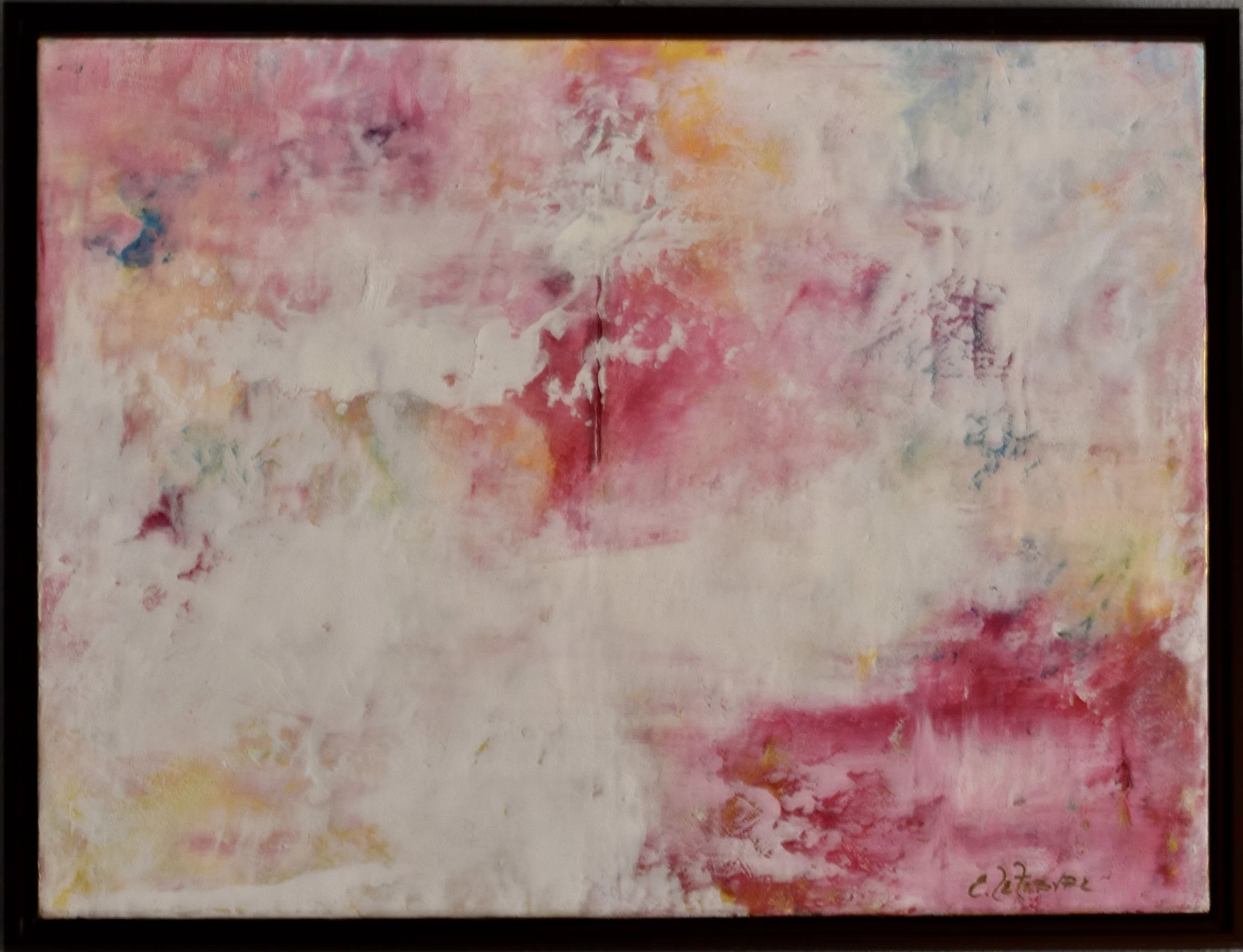 I’m working on a series of Calming abstracts. This painting looks fabulous in the white frame it has been placed in.